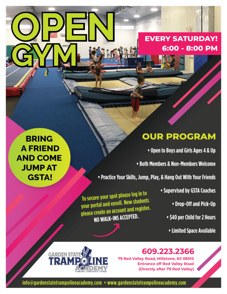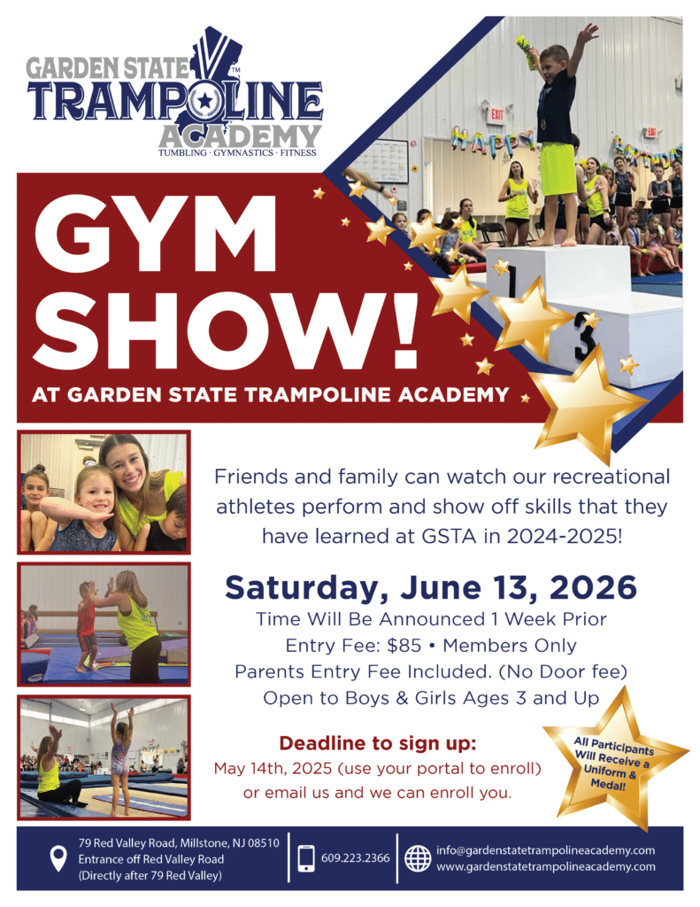 Whether your child is taking their first leap into gymnastics or aiming to soar at national competitions, Garden State Trampoline Academy is where their dreams take flight. With top-notch coaches, a state-of-the-art facility, and a fun-filled environment, we provide the ultimate foundation for your child’s growth, confidence, and success!